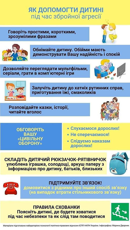 Сильне емоційне потрясіння, стрес, відчуття небезпеки можуть викликати у вашої дитини психологічну травму. Читайте нижче, як визначити, що у вашої дитини психологічна травма, та як ви можете їй допомогти. Якщо дитині потрібна допомога спеціаліста - можна звертатися на дитячу гарячу лінію нашого партнера Ла Страда-Україна/La Strada-Ukraine, яка працює в онлайн режимі. Щоб отримати консультацію пишіть: